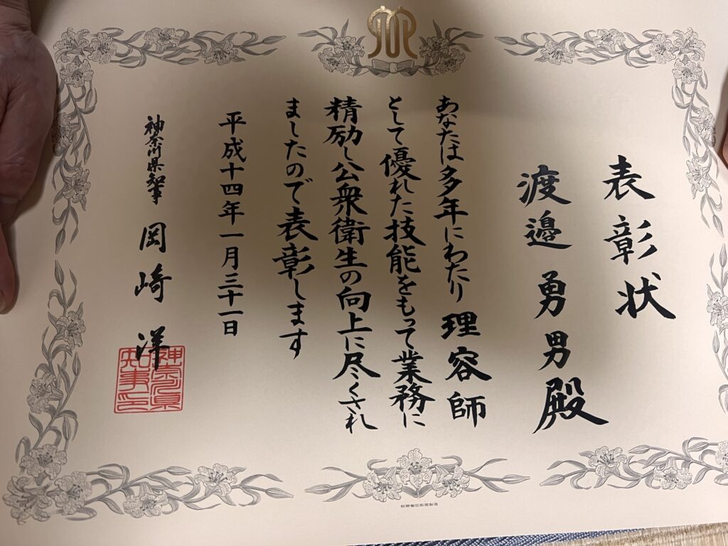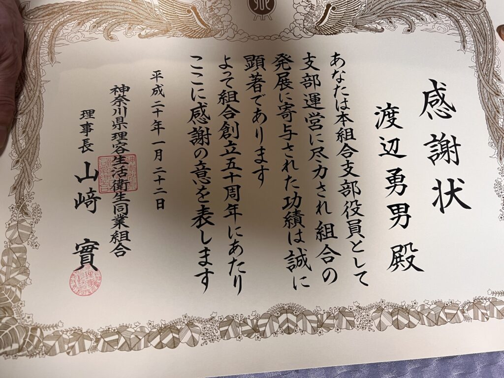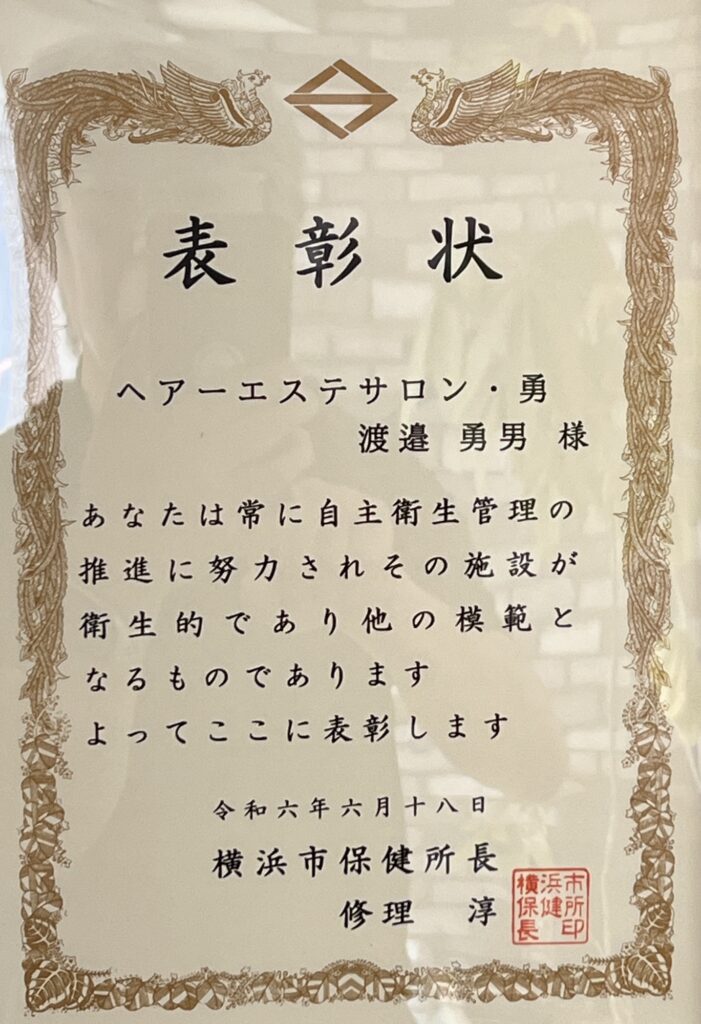 令和6年6月18日に表彰されました。今回は横浜市の環境衛生同業組合の衛生部門で表彰されました。